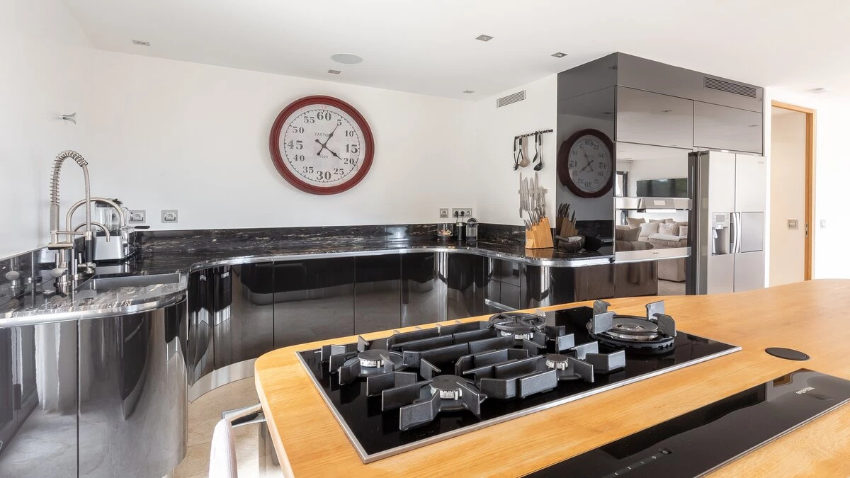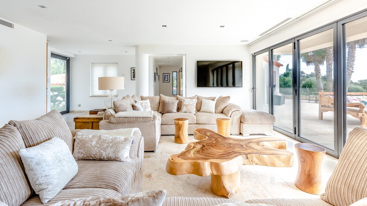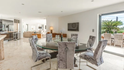 Villa Riviera is a stunning five-bedroom retreat where modern elegance meets relaxed Riviera living. Light-filled open-plan interiors flow effortlessly onto terraces, gardens, and a private heatable pool with jacuzzi, creating a seamless blend of indoor and outdoor living. The main kitchen is beautifully designed for effortless entertaining, with an adjacent breakfast terrace for al fresco dining.