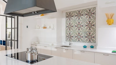 Outside, an infinity pool forms the focal point, accompanied by a stylish poolside bar, relaxed seating and a barbecue area, ideal for unhurried afternoons and evenings. A private, well-equipped gym provides a welcome extra for those wishing to maintain their routine.