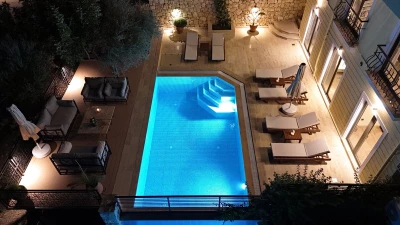 The property is also equipped with a refreshing private pool, surrounded by lush greenery and sun loungers for total relaxation. The villa is set in a brilliant location just five from Kalkan's old town, beach, harbor, shops, and restaurants. It is an easy walk back without a taxi.