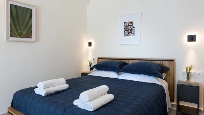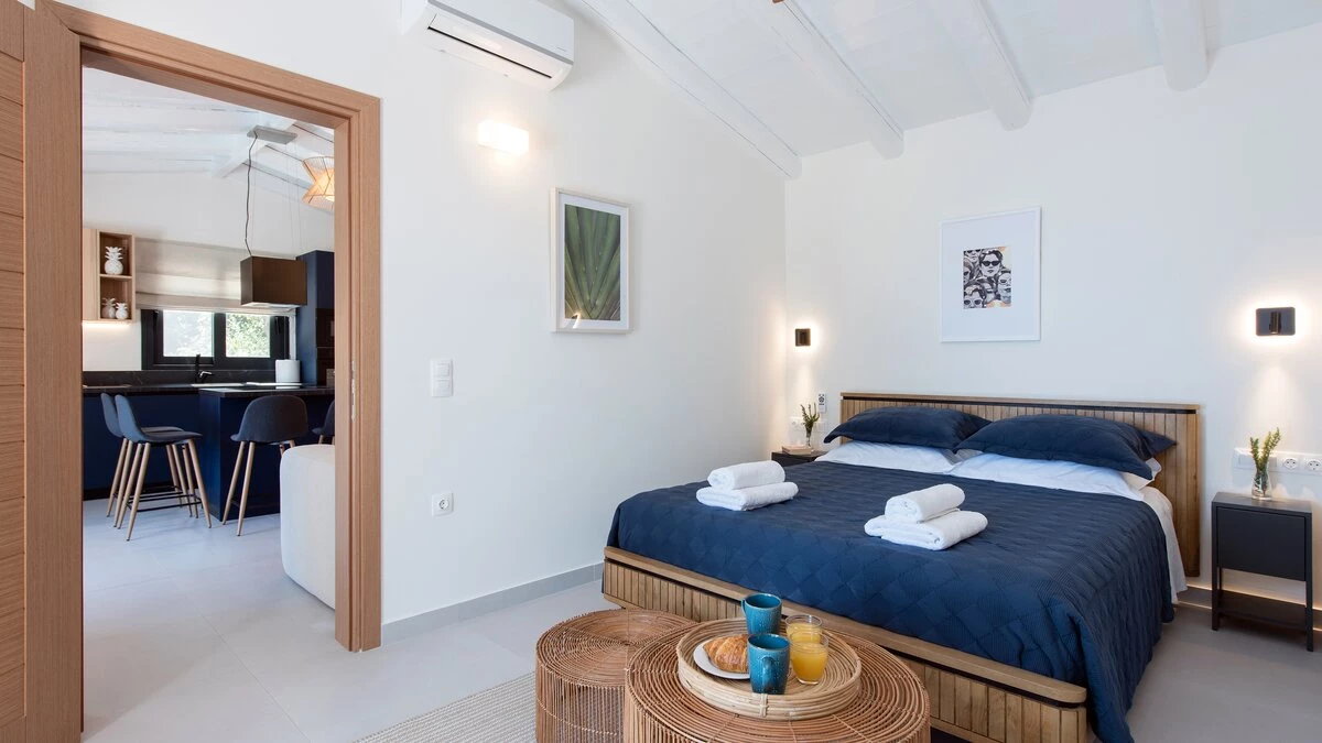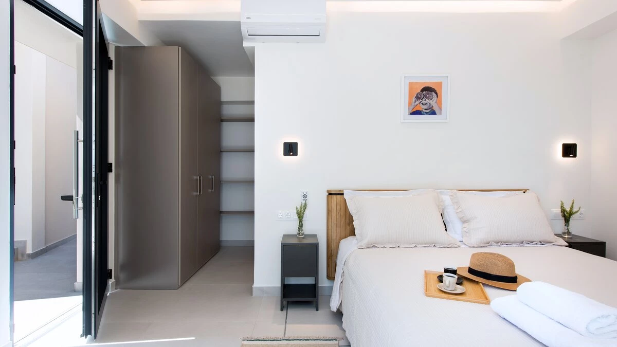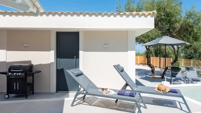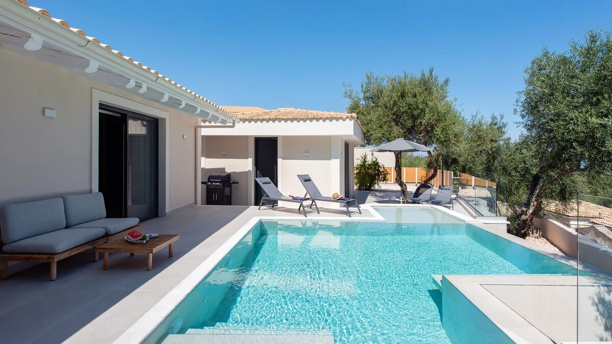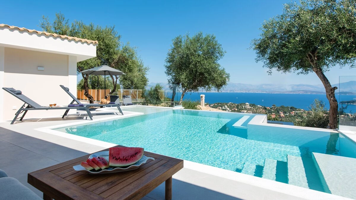 Villa Sterna is a beautiful newly built property in Corfu, boasting glorious views across the sea and towards Albania. Inside, the house is cool and airy, with minimalist furnishing and fresh, whitewashed walls. In the main house, guests can enjoy a spacious open-plan kitchen, living and dining space, as well as a double bedroom paired with an en suite bedroom. The villa also includes a self-contained double bedroom which can be accessed from the outside via its own entrance. This room also includes an en suite.