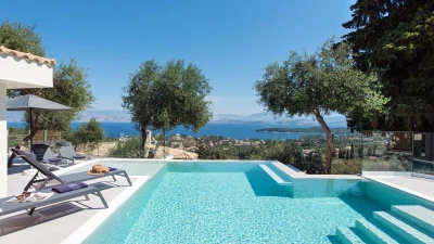 A wonderfully comfortable luxury villa in Lefkada, with magnificent sea views from its secluded seaf... -