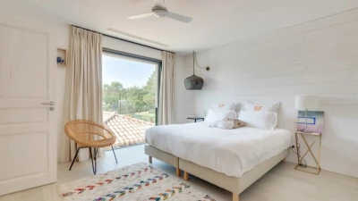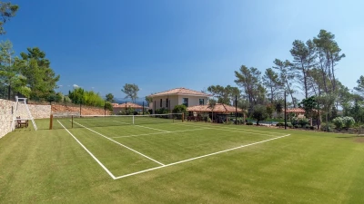 Outside, the mature gardens and private heatable swimming pool create a serene haven for relaxation and fun. Shaded spots, sunbathing terraces, a barbecue, tennis court, and pétanque court invite leisurely days, while a golf buggy makes exploring the estate effortless. With security at the entrance providing total peace of mind, Villa Style blends Riviera charm with effortless comfort. Whether enjoying the nearby spa and fitness centre or strolling to local restaurants, every detail is designed for a memorable family stay.