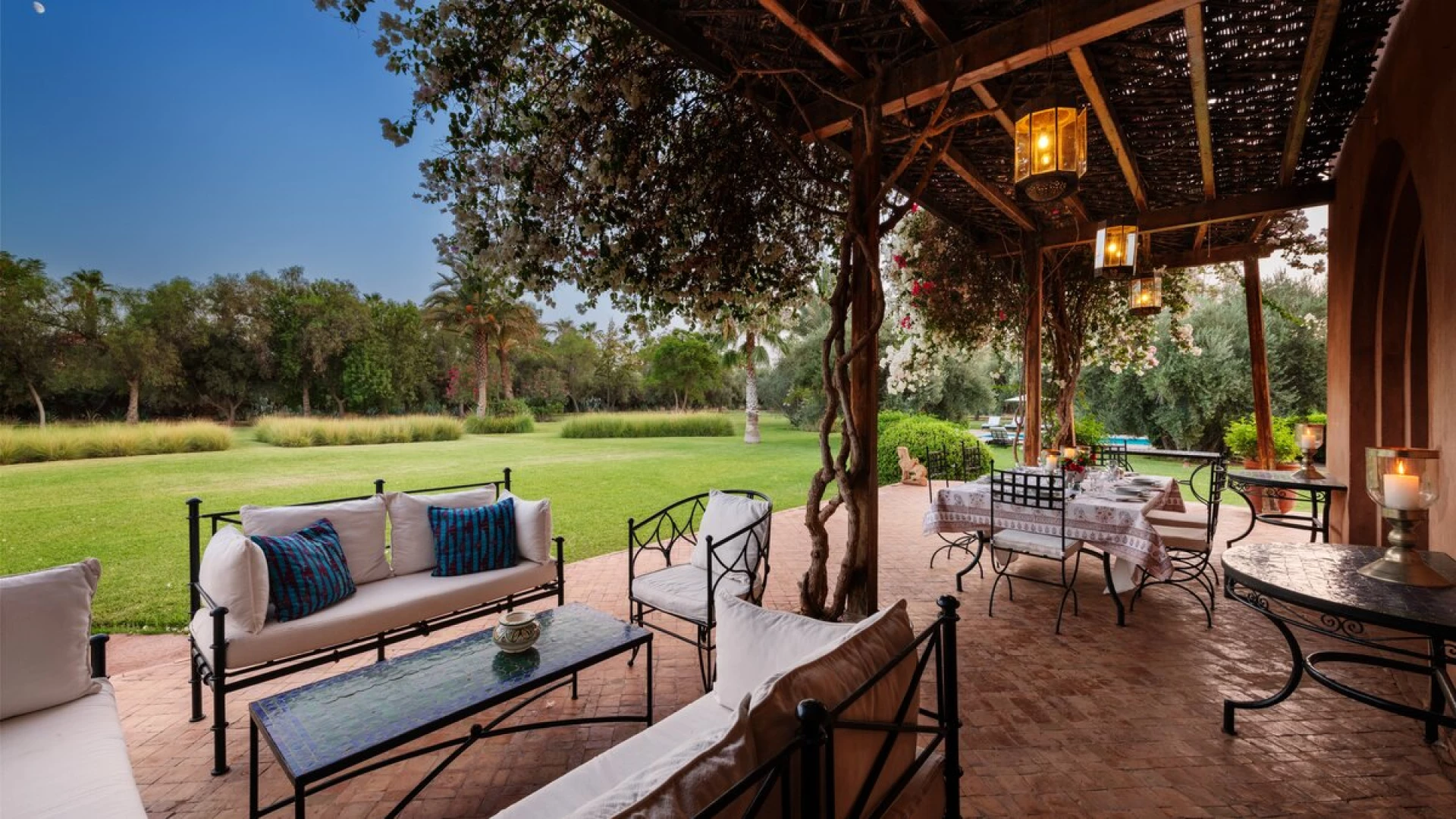 Dar Jannah is a lavish five bedroom villa set among three hectares of landscaped gardens in Marrakec... -