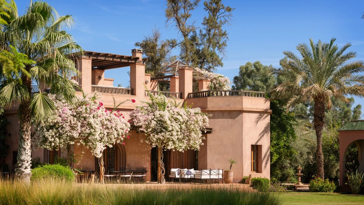 In the prestigious setting of the Palmeraie oasis, this sumptuous villa in Morocco is intimate, exot... -