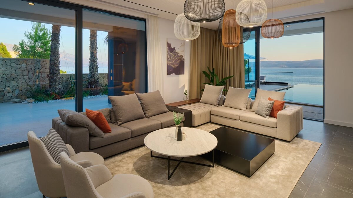 Nestled along the beautiful Dalmatian coastline near Split, Croatia, Villa Venus is an inviting escape for families and groups of friends. This exceptional property features eight spacious en suite bedrooms, each designed for utmost comfort. With a private spa treatment area alongside a hot tub and sauna, a cosy fire pit for evening gatherings, and a home gym and elevator, Villa Venus combines convenience with relaxation. With both an indoor and outdoor pool area, guests can opt to swim while enjoying breathtaking views of the sea and the mountains beyond, or relax in the serenity of the indoor space.