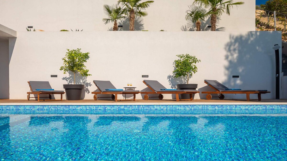 Outside guests can enjoy their own little slice of paradise over the Adriatic in which the private infinity pool edge seemingly flows into. Comfortable wooden loungers line the opposite edge of the pool, while a covered terrace provides welcome shade as an alternative to the sunny terrace. An al fresco dining terrace is accessed via the living area and is hard to beat when it comes to sunset. Meanwhile, a private staircase leads all the way down to the sea for swimming and private boat mooring.