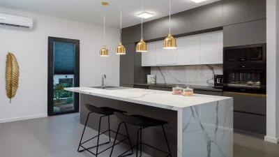 Offering direct sea access paired with sensational sea views, Villa Willow has been cleverly designed to showcase its incredible location. This designer villa is a modern masterpiece against a backdrop of endless blue vistas. Inside a vast living and dining area is tastefully decorated in rich blues and sleek shades of grey with modern artwork adorning the walls and picture windows welcoming in those showstopping views. Standout design features include a pillar framed staircase and a gorgeous marble kitchen island with chic pendant lighting in gold hanging overhead. A welcome addition to this luxurious living space is a fully-equipped gym and infrared sauna. Upstairs features four decent sized bedrooms decorated in the same opulent colour palette as the rest of the property are furnished with comfortable double beds; each has access to its own private shower room en suite with marble shower and double sinks.