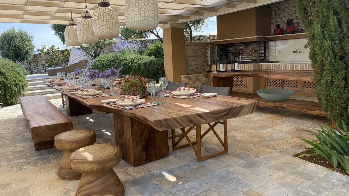 Outdoors, the villa excels in every regard. A spectacular 13 metre long infinity pool seemingly merges with the sea, framed by shaded lounges, and lush, Mediterranean-style gardens. A secluded beach just 250 metres away offers an exclusive escape for sunbathing and swimming in crystal-clear waters.