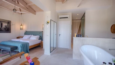 Should you choose to explore beyond the villa’s elegant grounds, the quaint harbour town of Kassiopi is only 1km away. Enhancing the experience further is a discrete concierge service, available to curate bespoke activities, in-villa dining, and seamless arrangements, ensuring every detail of your stay is effortlessly elevated.