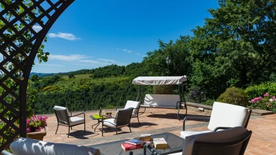 Lovingly restored in 2014, this charming villa in the south of Lucca provides scenic views and splen... -