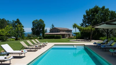 Commanding 360 degree views over silvered olive groves to the shores of the Adriatic, this historic ... -