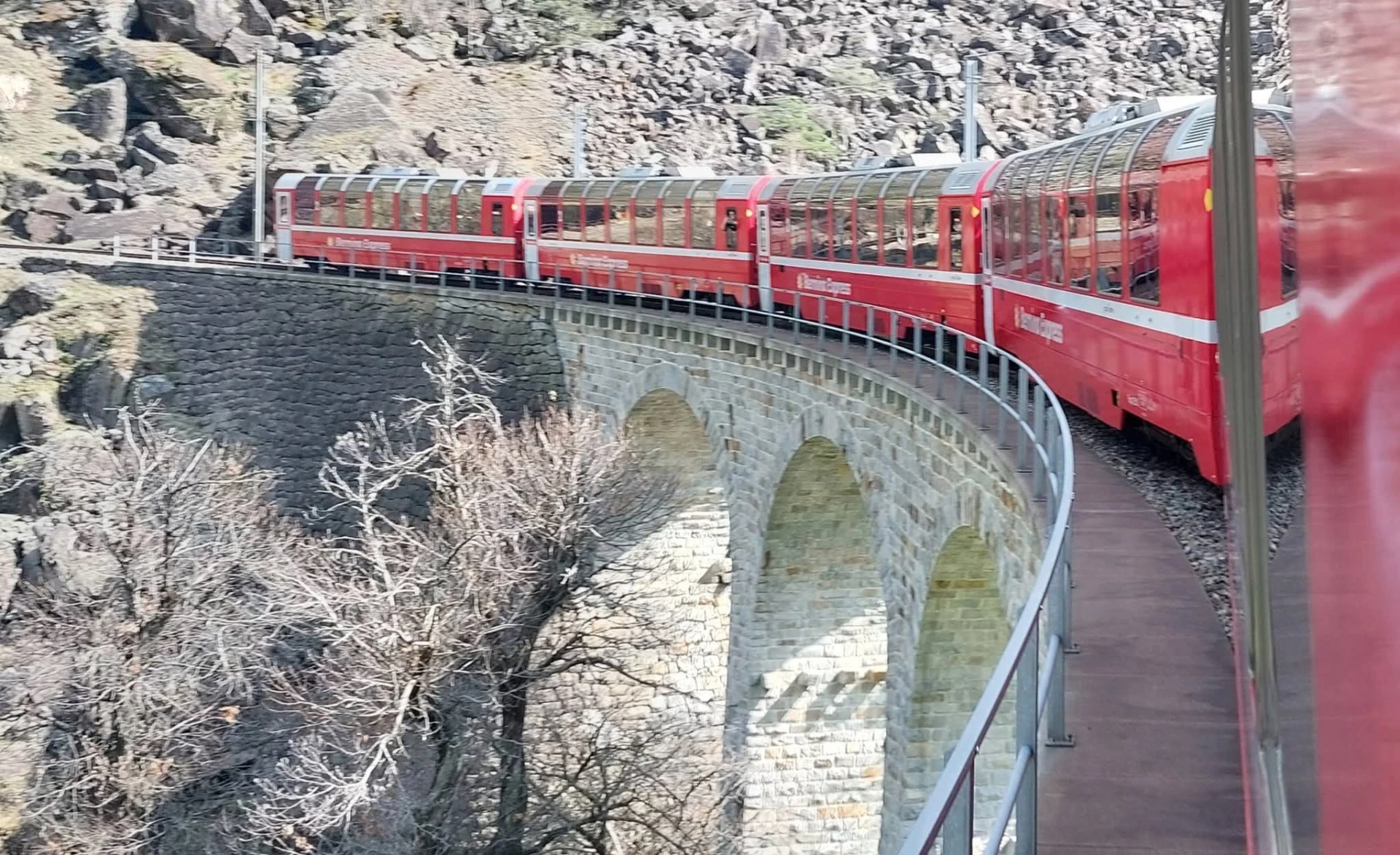 Then came the dramatic descent into Italy, where palm trees replaced snow-capped peaks. The most iconic moment came as we approached Tirano, where the train gracefully curved around the famous spiral viaduct at Brusio—camera at the ready!