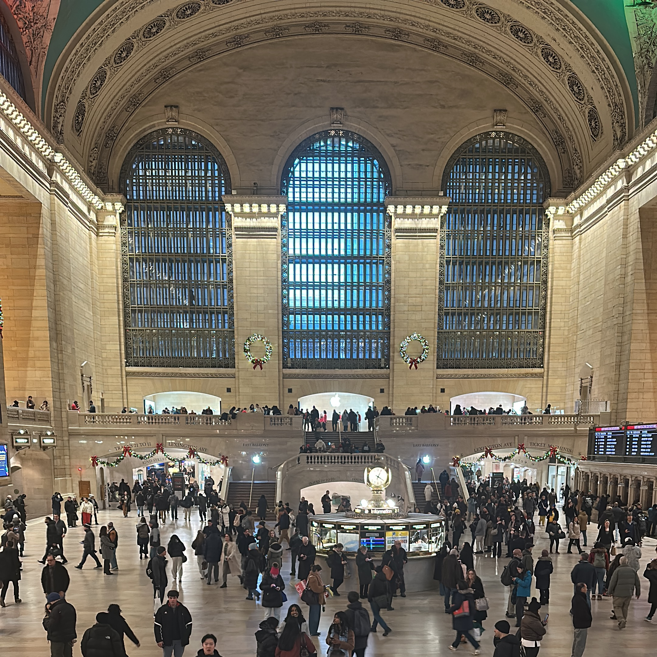 🌌 Why It Stuns: A celestial ceiling painted with constellations, golden light pouring into the main concourse, and the iconic four‑faced opal clock above the information booth. It feels like a time portal: elegant, bustling, timeless.