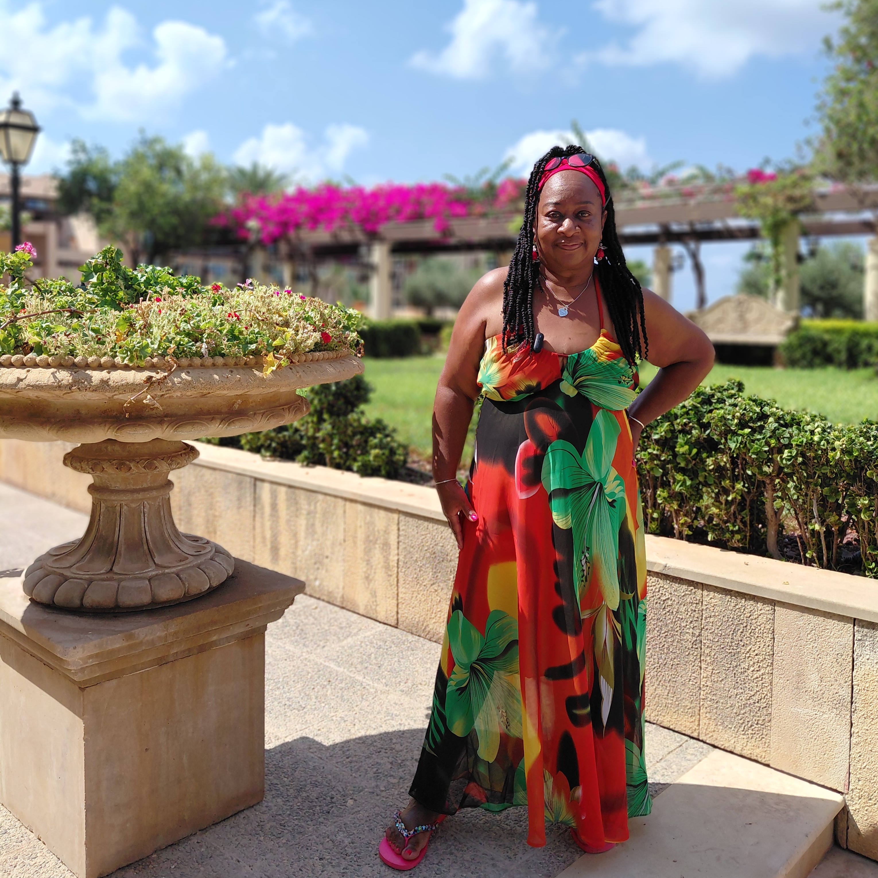 The architecture and décor were stunning, the manicured gardens, the marbled floor paving, the glass entrance surrounded by Cypriot plant holders of different sizes displaying large green foliage nd colourful flowers.