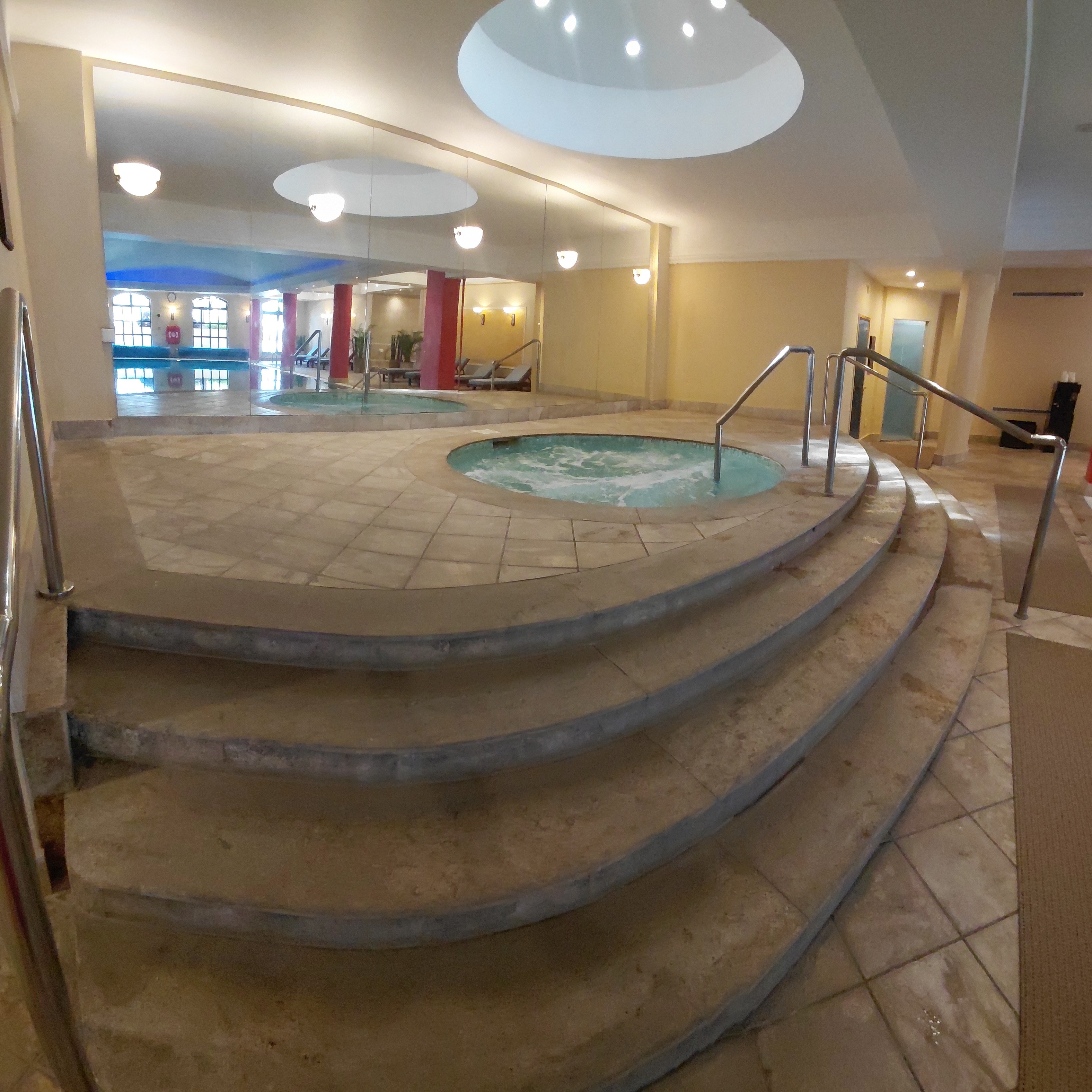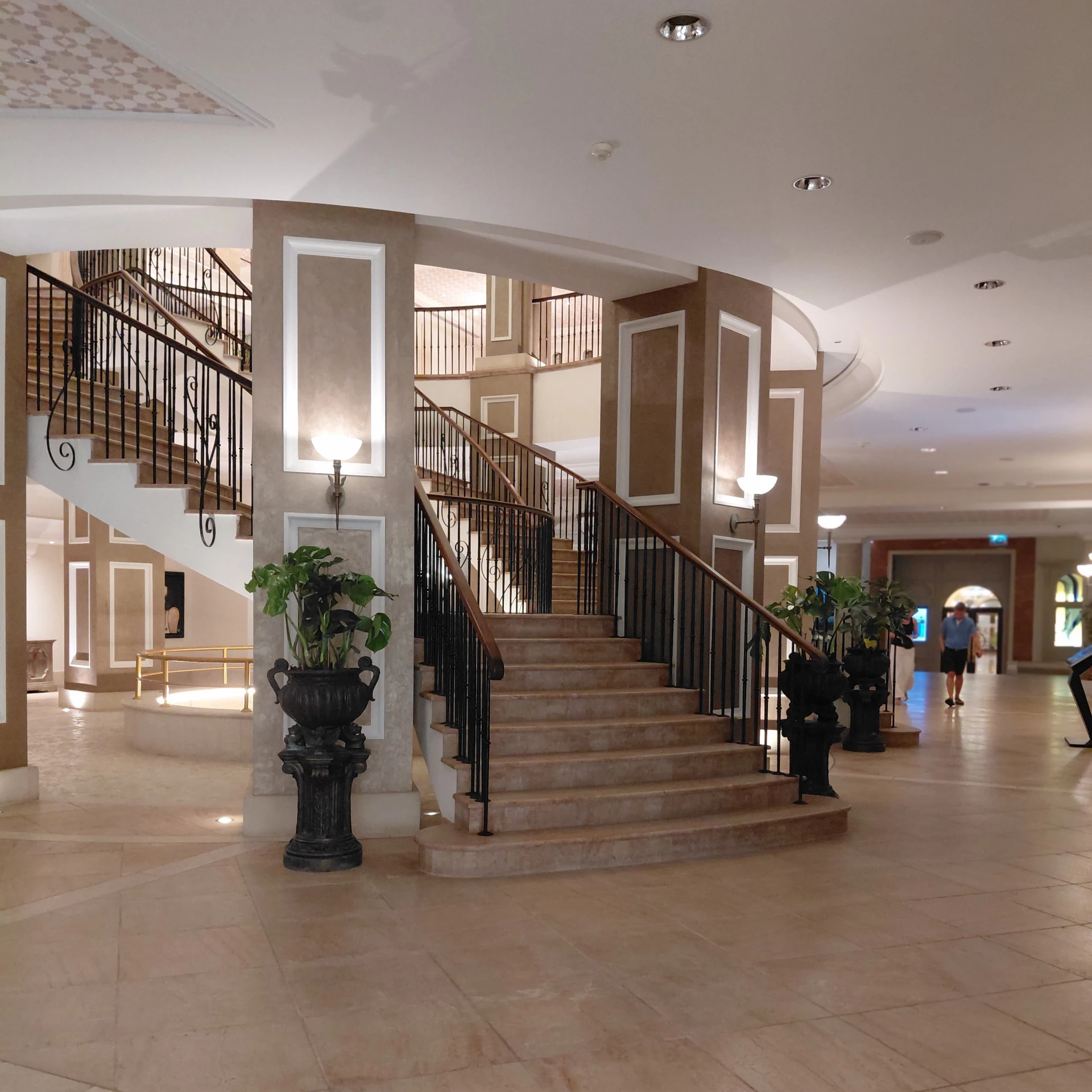 Through the centre of the hotel’s main reception area, is a stunning grand double marble staircase that takes you downstairs to the ground floor to the hotel's restaurants, souvenir shop, gift shop and a hahairdresser'sThe centrepiece on the ground floor is a water fountain with a large clear water globe just rotating round and round with what looks like stars of water, absolutely stunning…