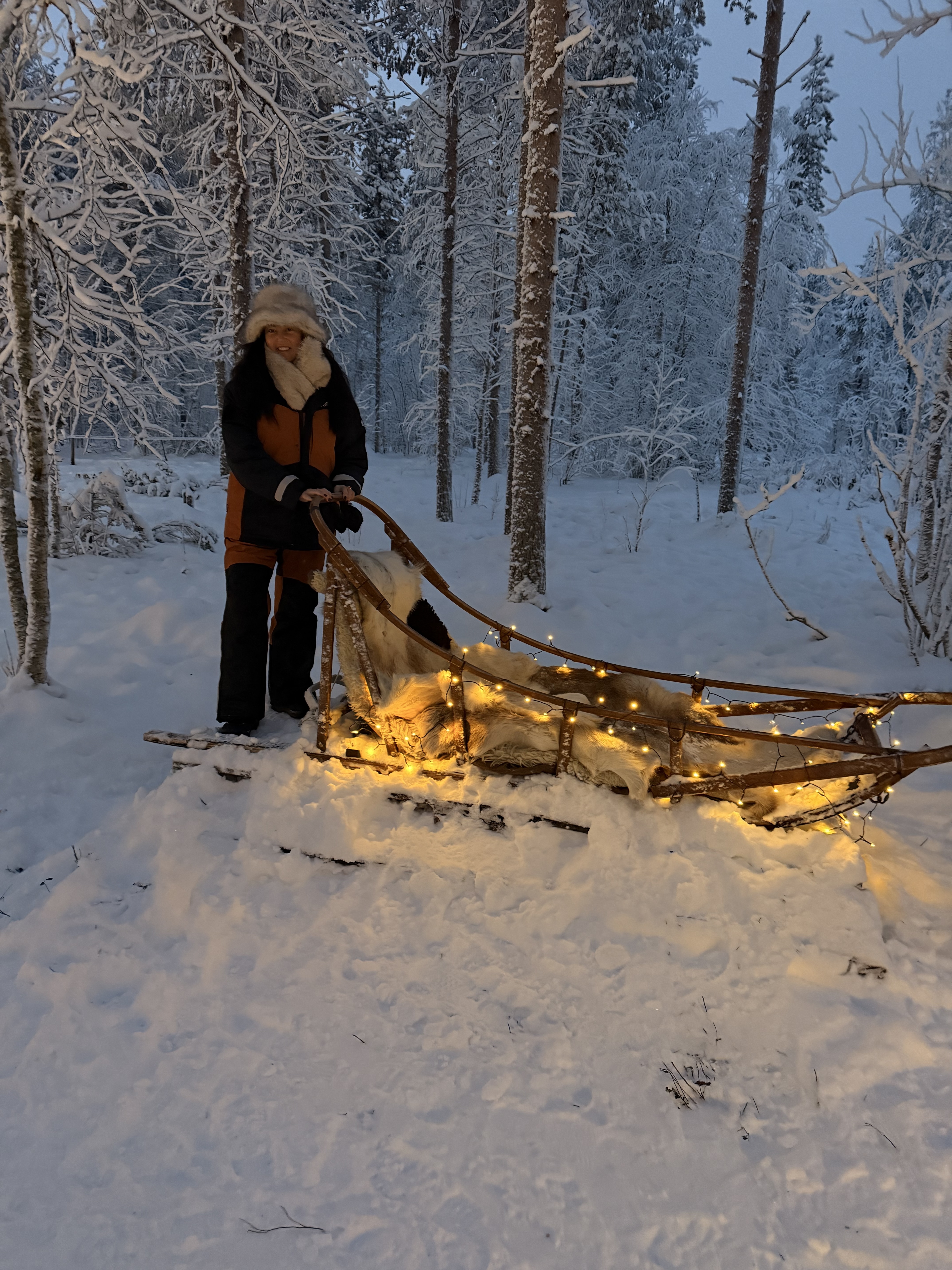 You sit back, wrap up warm, and gently glide through the snowy forest. Itβs one of those moments where everything feels still β quiet, magical and very Lapland.