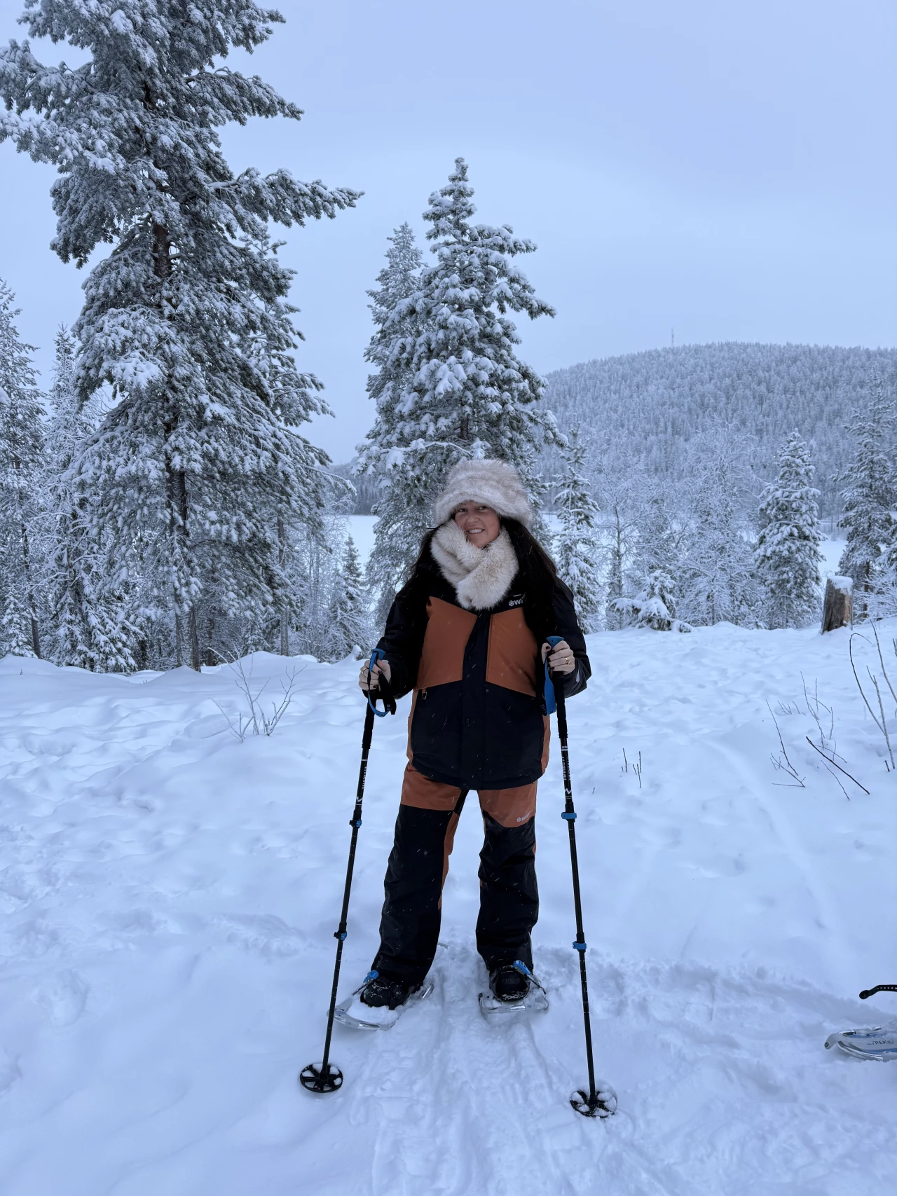 We started with snowshoeing, which is such a fun way to explore the winter landscape. With the snowshoes on, you can walk over deep snow that youβd normally sink straight into.