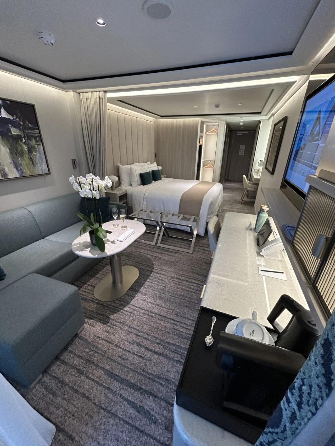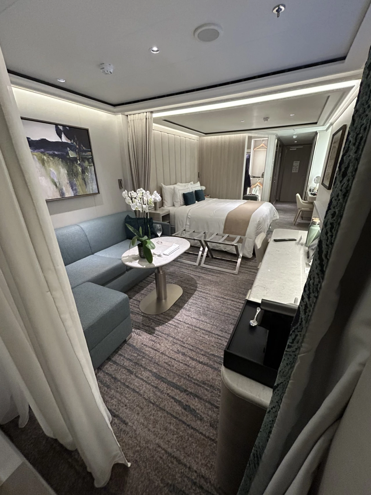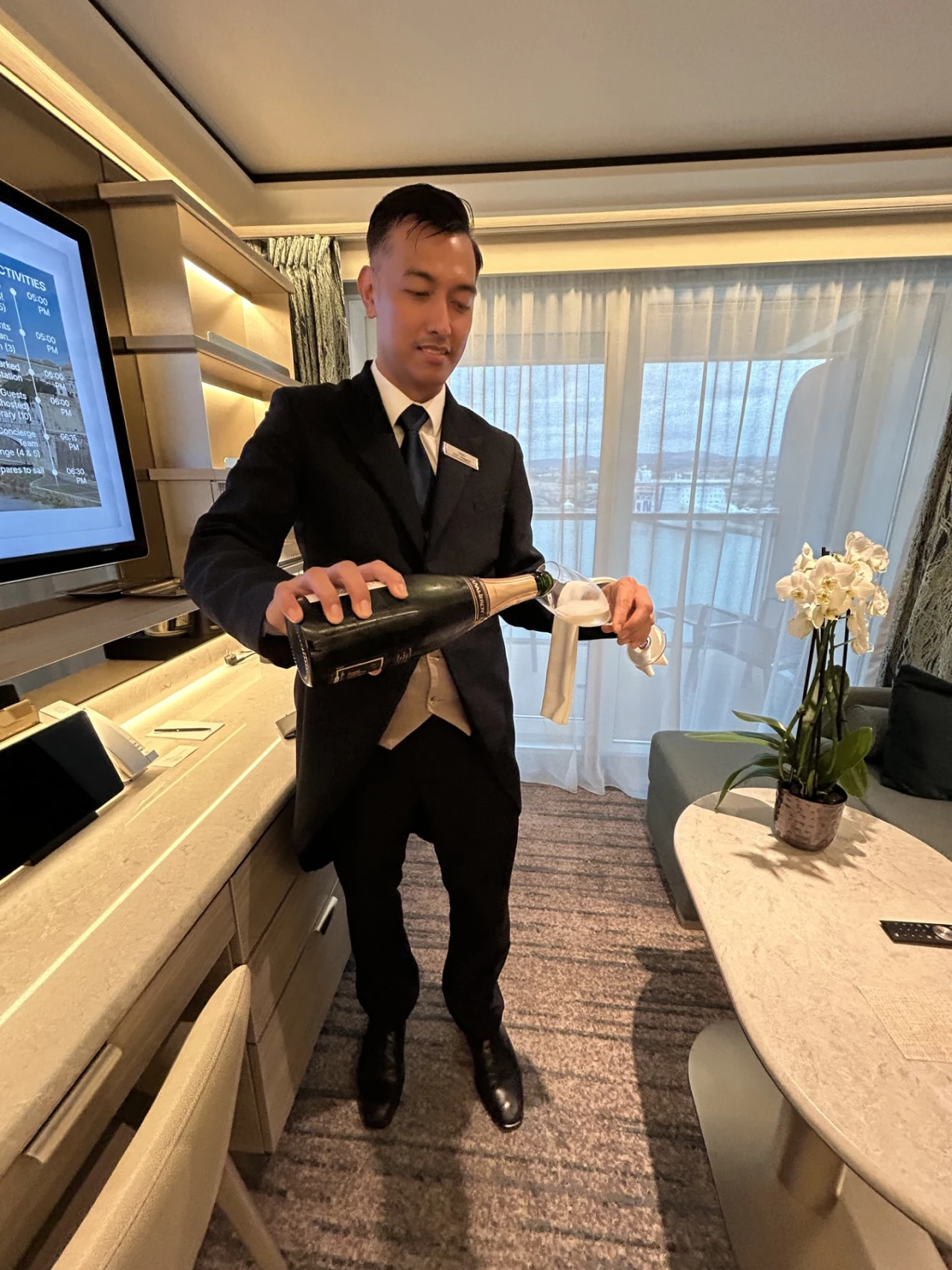 I boarded the ship in Rome port and was promptly greeted by my butler Tikio who was very attentive and poured me a glass of champagne for me to sail away from Rome. As a Silversea guest your butler is on hand to stock your mini, bar with your favourite alcoholic and none alcoholic drinks, provide pre-dinner canapes, assist with laundry requests, shoe cleaning and much more, I think I was very low maintenance as I made no requests, but itโs assuring to know that you have a butler on hand to enhance your experience.